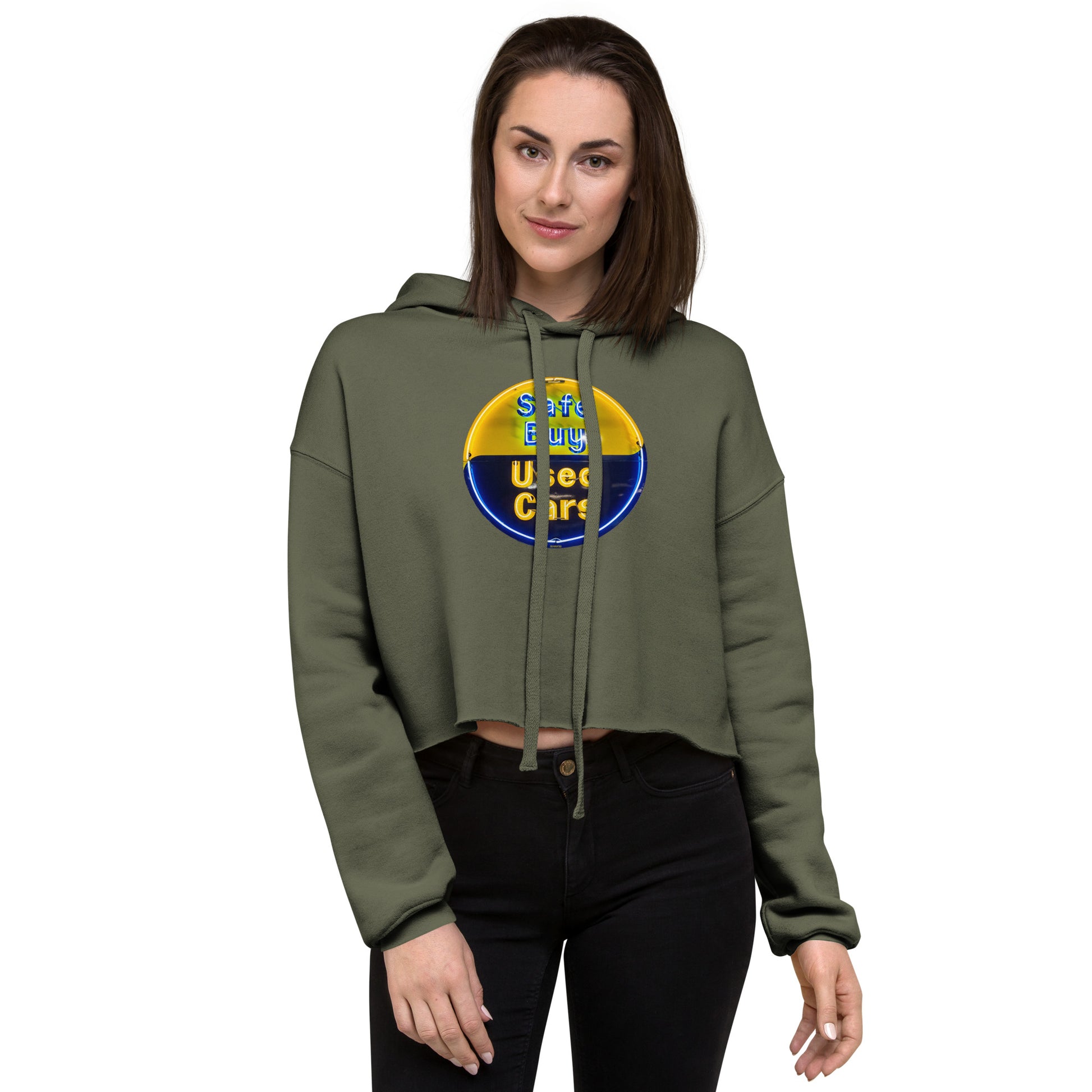 Buy Safe Vintage Used Car Sign Neon Style Crop Hoodie